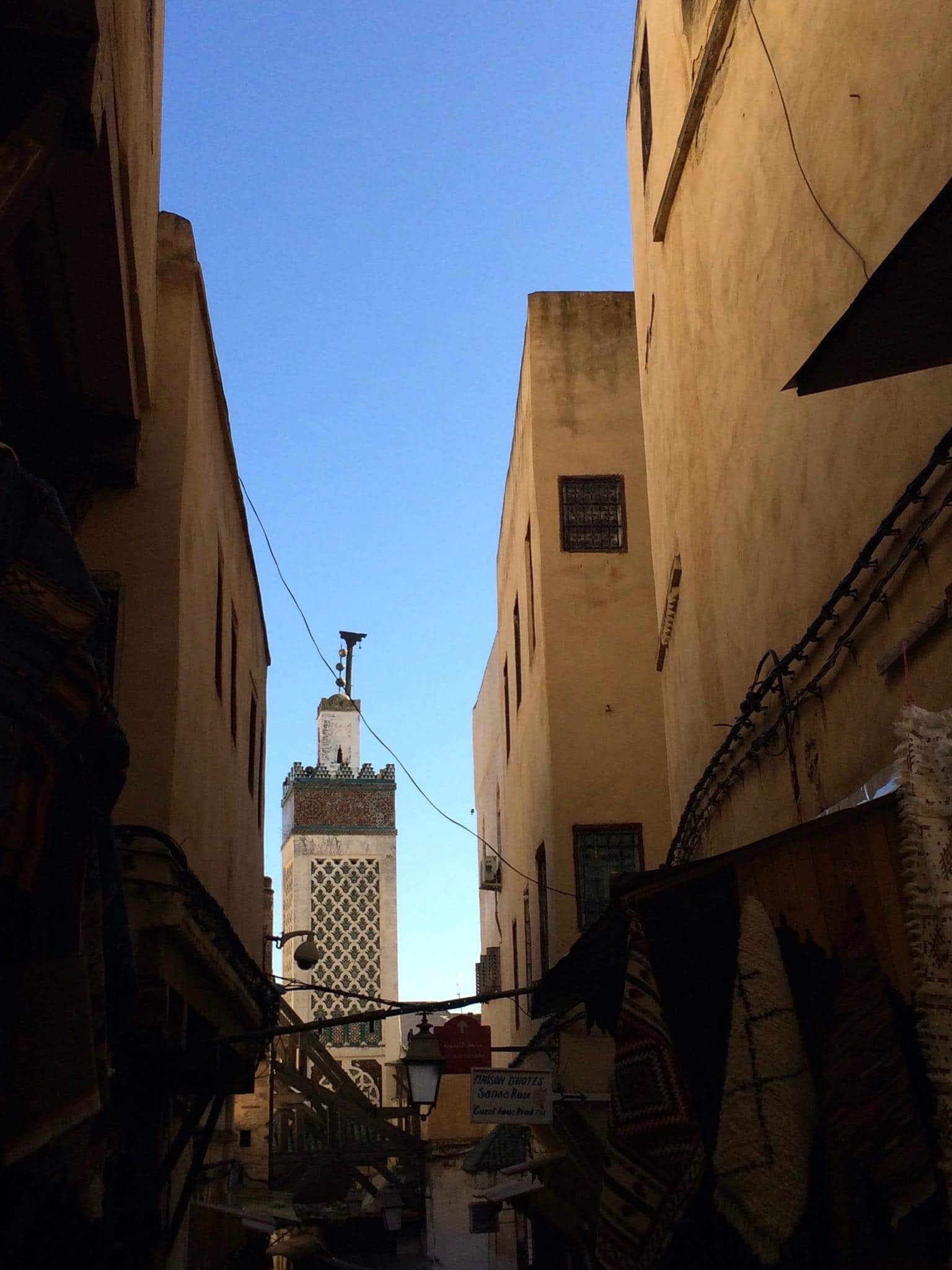 有名な青の街シャフ=シャウエンの次に向かったのは、迷宮都市フェズ。着いたのはお昼時で、太陽が真上から旧市街のクリーム色の高い壁を光らせている。