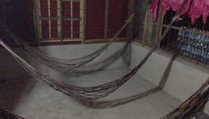 私が滞在したトンレアップ村の家庭や、そのご近所さんでは、どこも太めの縄をねじり合せて大きめの目で編まれたハンモックがほとんどでした。これが体に程よく食い込み、丁度良いホールド感なのです。