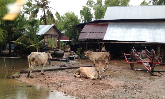 私が滞在したトンレアップ村は、家畜がたくさんいる村でした。そのため家の前や中庭は牛の糞でいっぱい!
