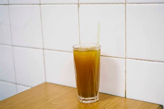 柑橘類の一種である柑桔(日本名はコウジ)のジュースです。茶色く濁った怪しい見た目から、最初は飲むのをためらうかもしれませんが、意外といけます。酸味の強い梅ジュースってところでしょうか。