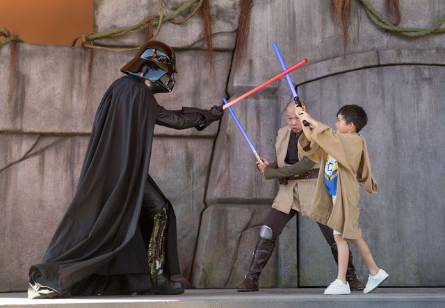 こちらは、子どもたちがジェダイになるためにライトセーバーを振るう参加型ショー「ジェダイ・トレーニング:トライアル・オブ・ザ・テンプル」。みんな真剣そのものです!