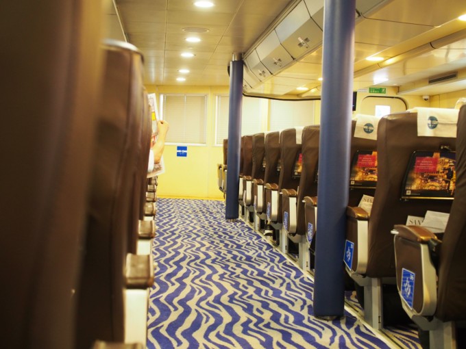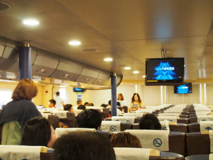 フェリーは飛行機のようにエコノミー席とちょっと高いスーパークラスがあります。エコノミー席の料金は時間帯や日付によって変わりますが、だいたい160〜200香港ドル。
