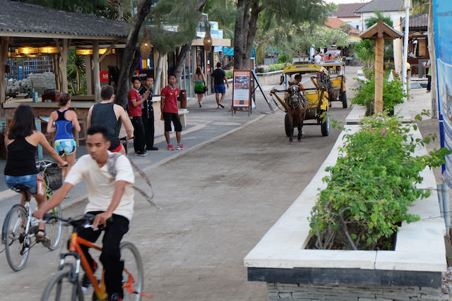 インドネシアのロンボク島からボートで約30分、ギリ・トラワンガン島へ到着します。島に到着して海沿いのメイン通りを歩いてみると、馬車と自転車と徒歩でぶらつく人しか見当たりません。ギリ・トラワンガン島では、車やバイクの走行は禁止されていて、主な移動手段は自転車と馬車だけ。