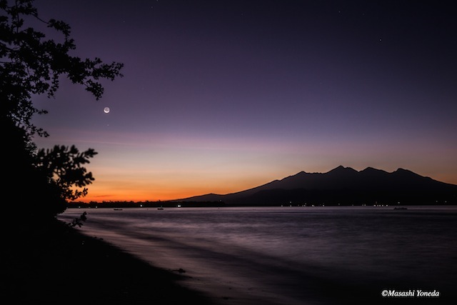 夜明け前の景色も感動的でした。右側に見えるのは、パワースポットとしても名高いロンボク島最高峰の火山・リンジャニ山。