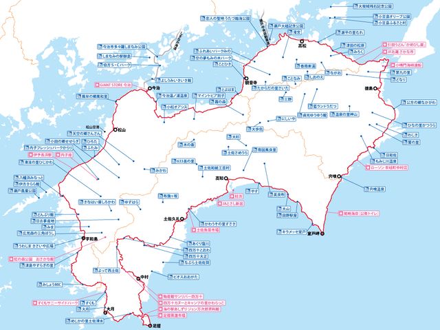 愛媛県は、2017年3月に「四国一周1,000キロルート」を発表した。これは、四国を周遊するサイクリングロード。台湾が取り組んでいる、台湾島を一周する環島(ホァンダオ)というサイクリング計画を参考に、中村時広・県知事が仕掛け人となってサイクリングアイランド四国の実現に挑戦している。ひとつの「島」を一周する達成感を、ここで味わうことができる。