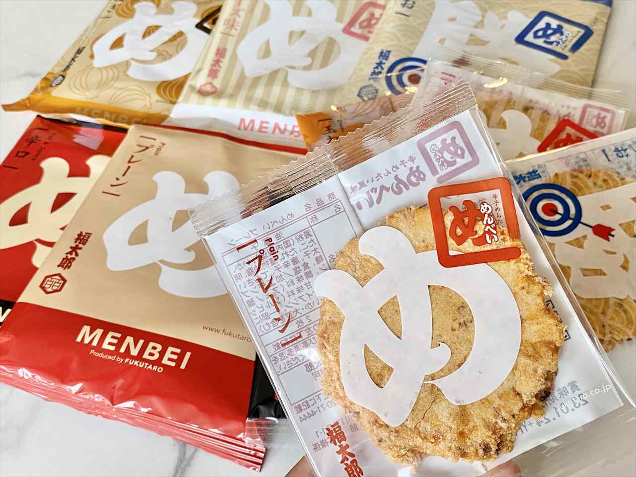 多彩なフレーバーがそろい、マヨネーズ味、辛口、玉ねぎ入りをはじめ、各ご当地名物ともコラボレーション。2016年には、『プレミアムめんべい』、2020年には、ポケットサイズの『めんべいチップス』が誕生しました。