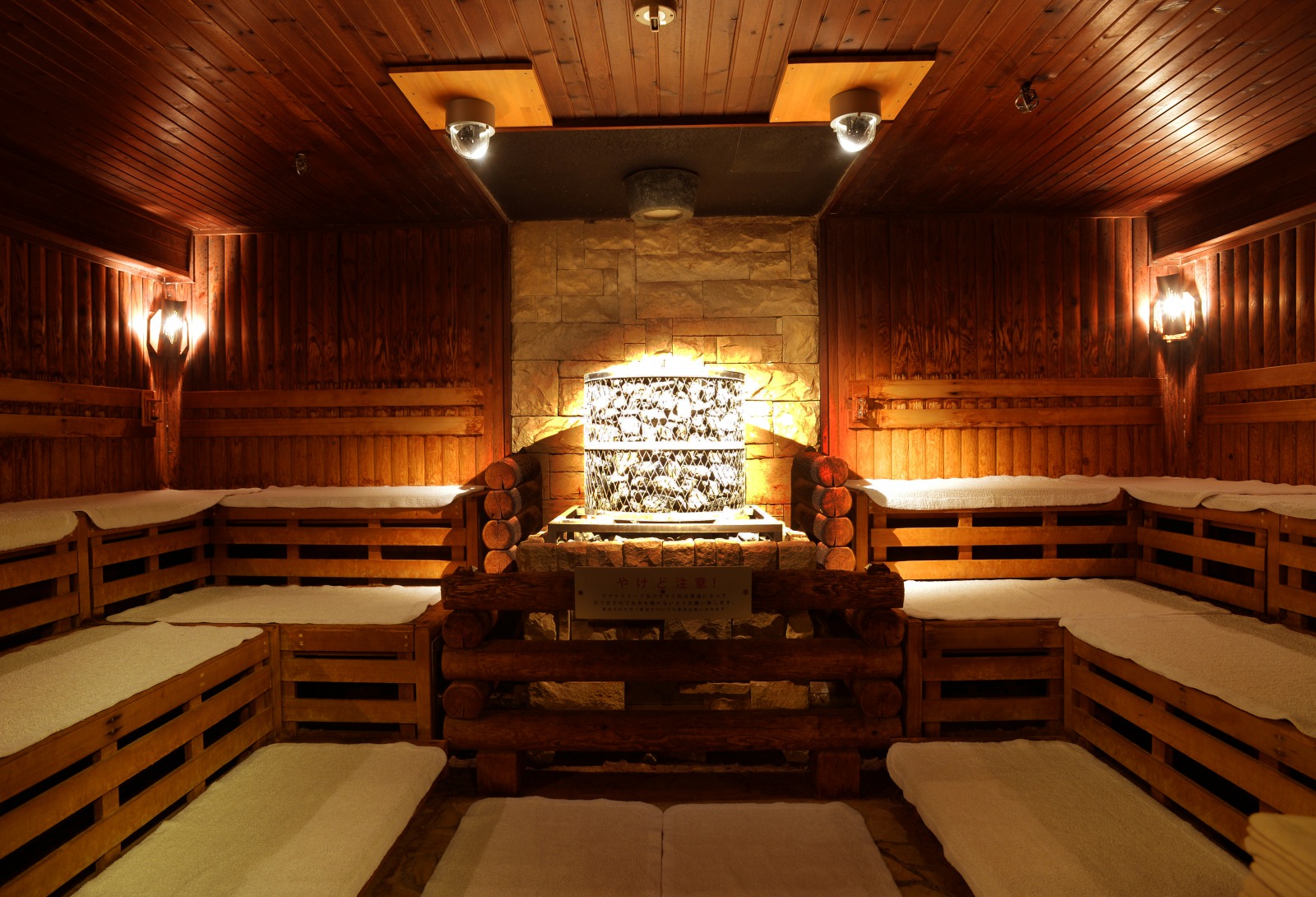ニコーリフレをご紹介する上で欠かせないのが、こちらの本場フィンランド式のロッキーサウナです。収容人数30人ほどの広々としたサウナは、室温がおよそ90℃ほど。心地よい温度と湿度がとても気持ちよく、そして何より広々と快適でゆったりとサウナを楽しめるのが素晴らしい。熱いのがそこまで得意ではない人も楽しめる、心地よいサウナです。
