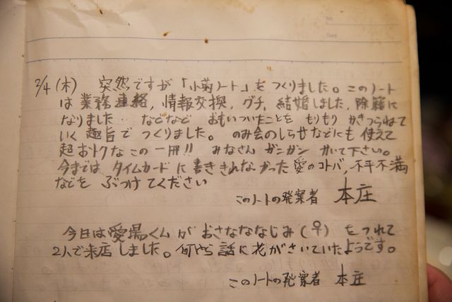「お店で一番最初にアルバイトしてくれた子はもう47歳。彼が大学生の頃に始めたものだから、このノートはかれこれ20年くらい続いているね」
