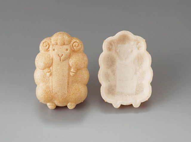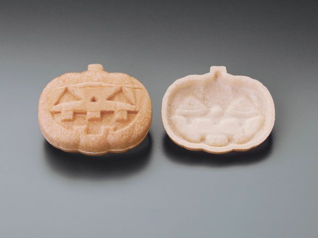 伝統を守りつつ新しい風を取り入れながら、丹精込めて作られた加賀種のもなか皮には、ほかにもテディベア型やトウモロコシ、羊、ハロウィンにおすすなジャック・オー・ランタン、開発に苦労したというカットりんご型などがあり、眺めているだけでワクワクが止まらない。どれも100枚(50個分)単位で販売され、あんこも別売りされている。