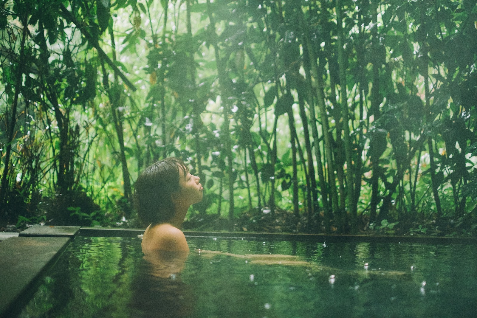 天山の浴場は、温泉に浸かりながら緑の中に溶け込めるのが魅力。誰もが不要なものを一旦肩から下ろし、自然に身をゆだねられる場所です。