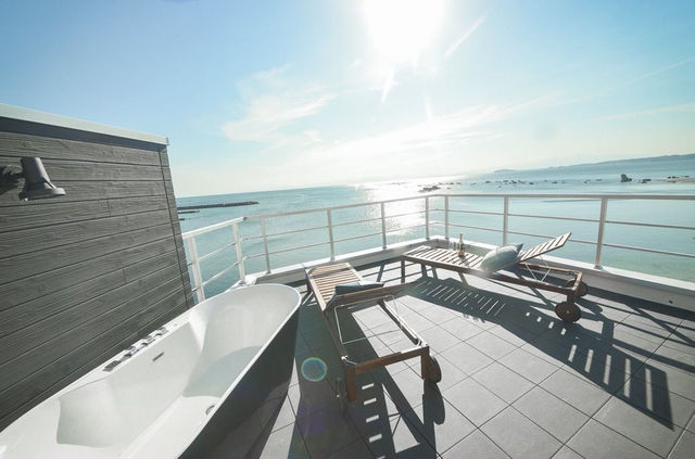 非日常的な空間で、海辺の雰囲気を満喫する。