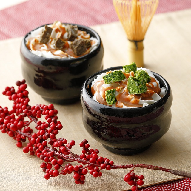 香り高いほうじ茶が楽しめる「ほうじ茶オレ」に、おなじく白あんホイップ&きなこソースをトッピングしました。気分やお好みに合わせてお選びください。