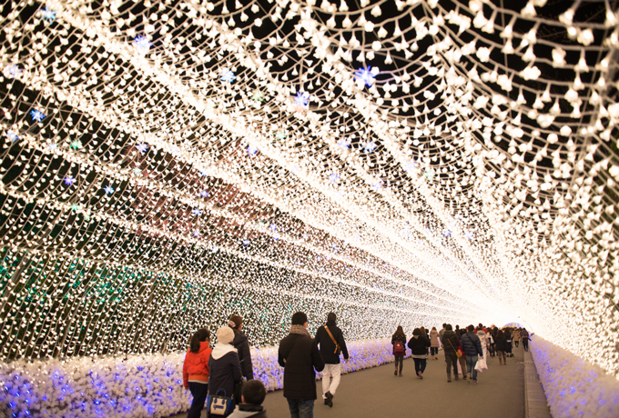 「死ぬまでに行きたい!世界の絶景」本でも紹介されいているフラワーテーマパークの「なばなの里」。