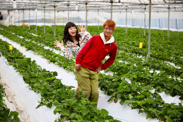 日本一若いいちご農家こと、たいぴー夫妻(※ノリがいい)。