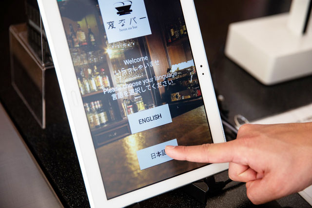 オーダーはすべてタブレットで行ない、生ビールは専用カップをセットすると下から注がれるシステム。トルネードしながら注がれる瞬間を見逃さないで下さい。