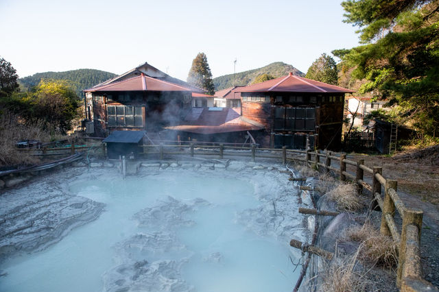 すぐ裏手に70〜90℃ほどの源泉があり、浴泉温度も40〜45℃と熱め。白濁したにごり湯で、嘉永6年(1853年)には、吉田松陰も湯治に来たそうな。