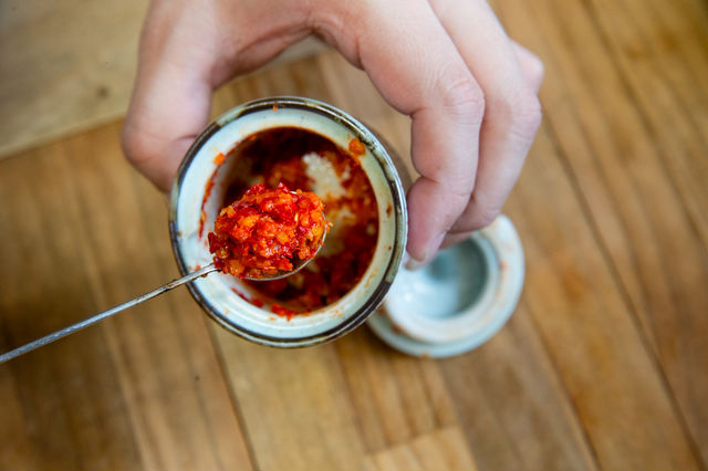 「地元の人が国見のほうで作ってるやつなんだけど、おいしいでしょ? 市販のやつはだいたい常温保存できるように塩辛くしてるんだけど、これは風味を重視してるから香りがいいですよ」