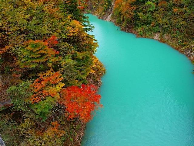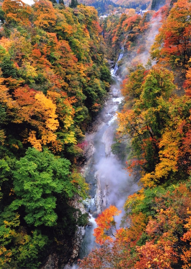 高瀬川が流れる「高瀬渓谷(たかせけいこく)」は、長野県内でも有数の景勝地。色鮮やかな紅葉とエメラルドグリーンの水面のコントラストに心を奪われます。渓谷に佇む葛温泉は300年の歴史があり、湯量が豊富で、岩魚・山菜などの料理を味わえます。紅葉を眺めながら浸る露天風呂も格別。