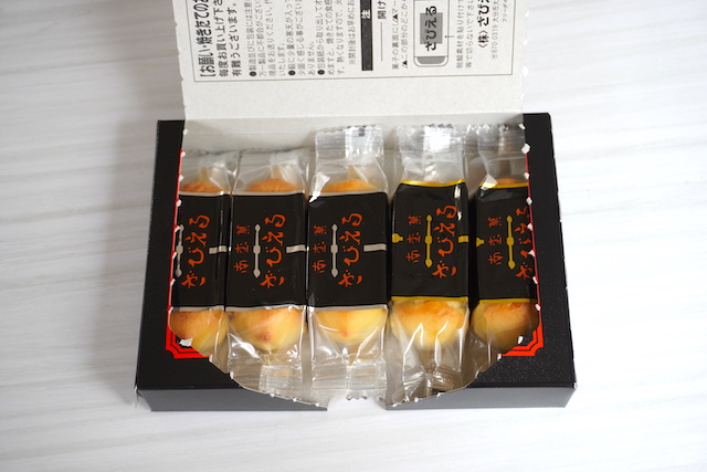 パッケージを開けてみると金と銀、2種類のお菓子が、個包装で並んでいます。金が2個、銀が3個の合計5個。このサイズは496円(税込)と、500円以内で購入できて、ちょっとしたお土産に重宝しそうです。
