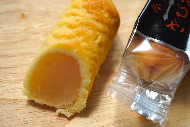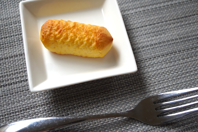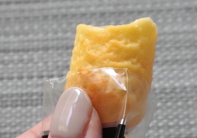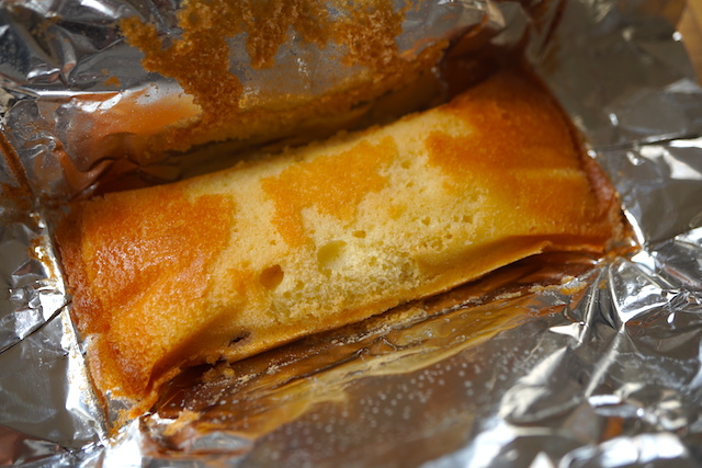 ホイルを開くと四角いカステラ生地のお菓子。