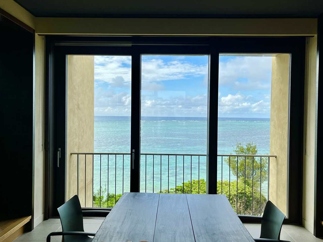 庭を通り抜けて客室へ。100室ある客室はすべてオーシャンフロント。大きな窓からは海が望め、窓を開ければ海風も通り抜け、波の音が絶え間なく聞こえてきます。