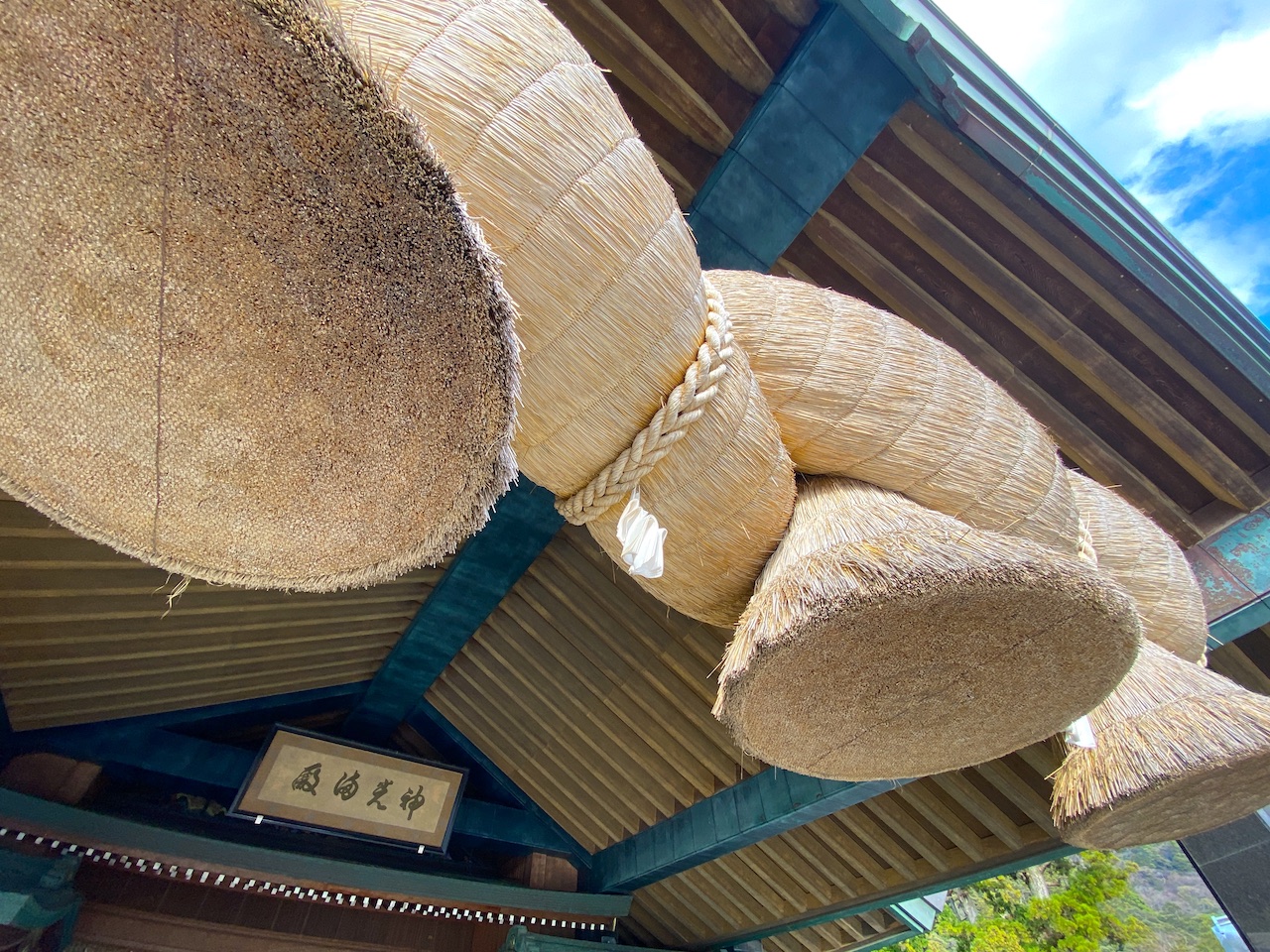 出雲大社といえば、真っ先に思い浮かべるのが神楽殿の大注連縄。このしめ縄は長さ約13m、重さ5.2トンもあり、数年に一度、新しいしめ縄へとかけ替えられます。