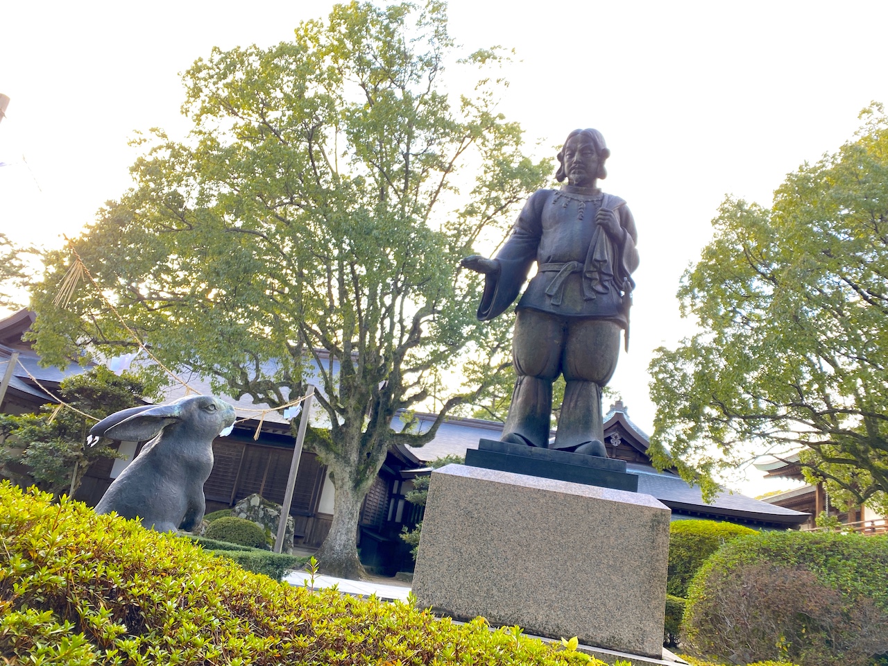 本殿へはさまざまな場所から向かうことができますが、正門から参拝するルートを紹介します。「因幡の素兎」の神話にちなみ、境内には66羽もの可愛いウサギの石像があるので、卯年(うさぎ年)である2023年に参拝するなら、そちらも要チェックです。