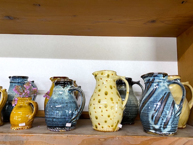 店内には湯呑み、茶碗、コーヒーカップ、箸置き、花瓶、大皿から小皿、鉢類までさまざまな器類が並んでいます。そのどれもが土から生まれたことを感じさせてくれるほっこり温かな色合い。まるみのあるフォルムも心和みます。