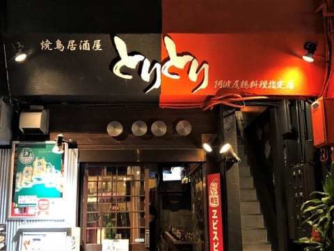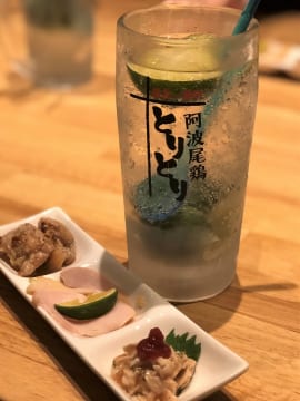 徳島初日の夕食は、昭和47年創業、半世紀近く徳島駅前で愛され続ける伝説の居酒屋「焼き鳥居酒屋とりとり」。軍鶏とホワイトプリマスロックを掛け合わせて作った、徳島ブランド地鶏「阿波尾鶏(あわおどり)」がいただけます。