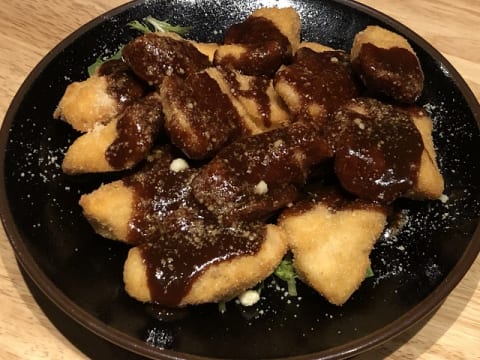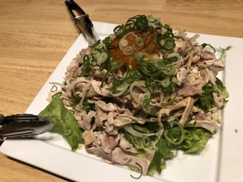 真っ先に出てきたのは、新鮮な鶏でないと調理できないという地鶏の「肝料理」でした。やや甘辛い味付けで、レバーNGという方でも、臭みがなくていくらでも行けちゃいます。