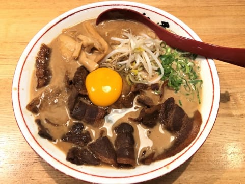 ラーメンが運ばれてきたとき、生卵乗せには驚きましたけど、これを溶かしても全然大丈夫。まろやかな味わいになります。