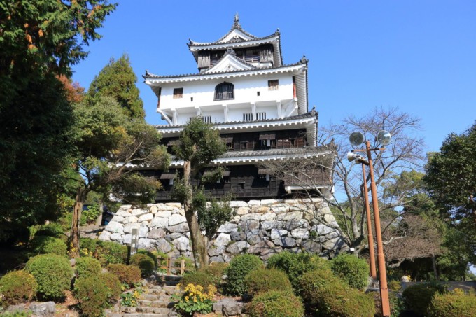 岩国城は、錦帯橋から見える山の上にあります。お城まではロープウェイで登ることができ、4階にある展望台からは、岩国の歴史が受け継がれてきた街並みや、錦帯橋、瀬戸内海、そして四国の山々まで見渡すことができます。