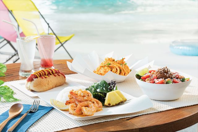 身体を動かしてお腹が減ったら、プールサイドのカフェテリア「Marina Blu」へ。ガーリックシュリンプや八ヶ岳バーガー、白州ソーセージ盛り合わせといった軽食、キッズプレートまで、こだわりの食材をふんだんに使った手作りの料理を味わうことができます。こちらのお店では、水着のまま食事を楽しめる気軽さも人気。季節のイベントに合わせたメニューもあるので、是非チェックしてみてください。
