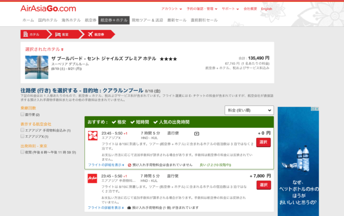 実際に僕も今回は、AirAsiaGOを使ってマレーシア・クアラルンプールの航空券と、ペトロナス・ツインタワー近くのホテルをセットで予約しました。