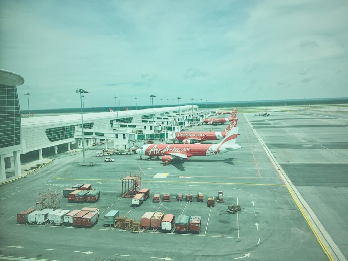 (マレーシアの空港にはAirAsiaのフライトでいっぱい)