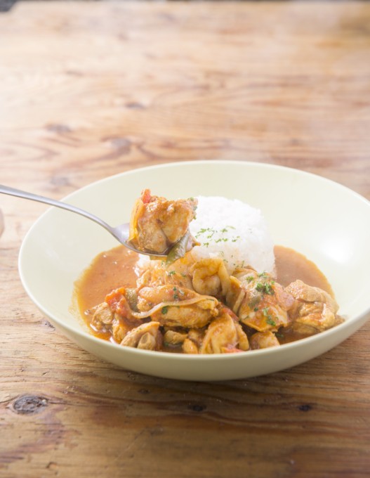 ネパールのトマトチキンカレーです。たくさんの種類のスパイスが入っていますが、香り自体は強すぎず、子どもにもおすすめ。酸っぱすぎず、ごはんが進む味です。