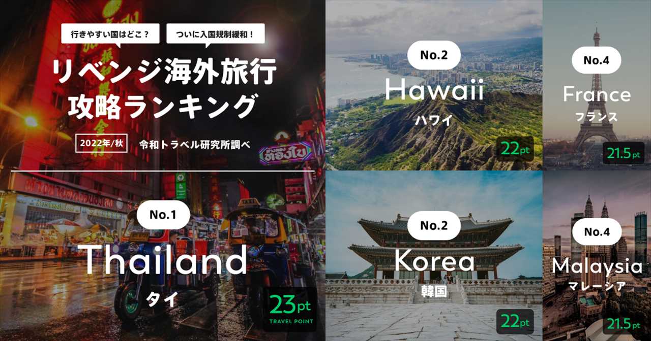 【2022年秋】今、行きやすい海外旅行は?「リベンジ海外旅行 攻略ランキング」発表