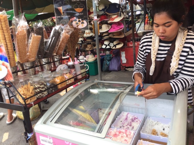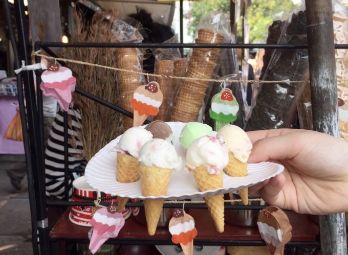 タイ雑貨や、洋服、バッグ、アクセサリー、古着、水着、お菓子、さらにペットまで売られています。屋台も沢山あり、美味しいタイ料理、フレッシュなスムージー、アイスなどもあります。
