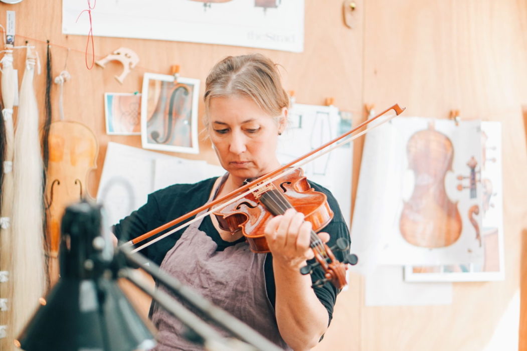 彼女のバイオリン作りは、木を選ぶところから始まります。木によって響きが変わるそうで、音がどれくらいの速さで響くかを判断して木を選んでいるそう。切った木は2〜3年乾燥させて湿気を飛ばし、すべて彼女が手作業で作っていきます。