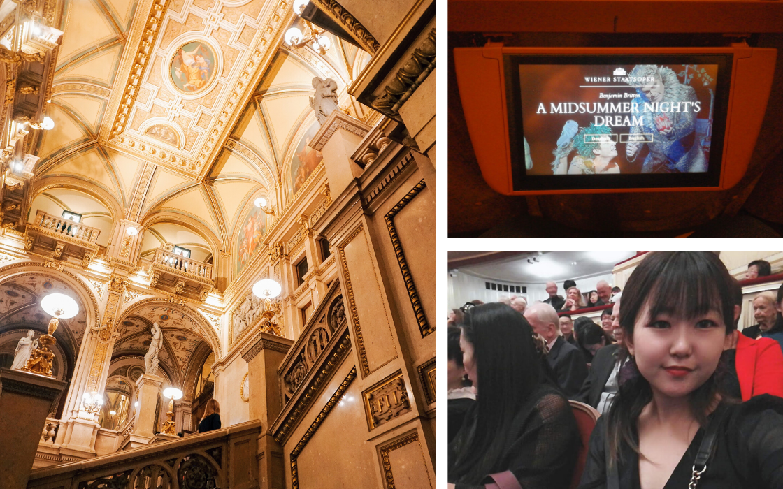 ウィーン国立歌劇場の特徴は、そのレパートリーの多さ。年間300回ものオペラやバレエの異なるプログラムが上演されます。わたしは今回の旅で、ベンジャミン・ブリッテンの「真夏の夜の夢」でオペラデビューを果たしました!