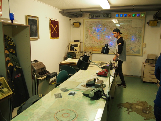 博物館として整備されているシェルターには作戦室のような部屋もありました。注目したいのは奥にあるディスプレイマップです。ガイドが熱心に説明してくれました。