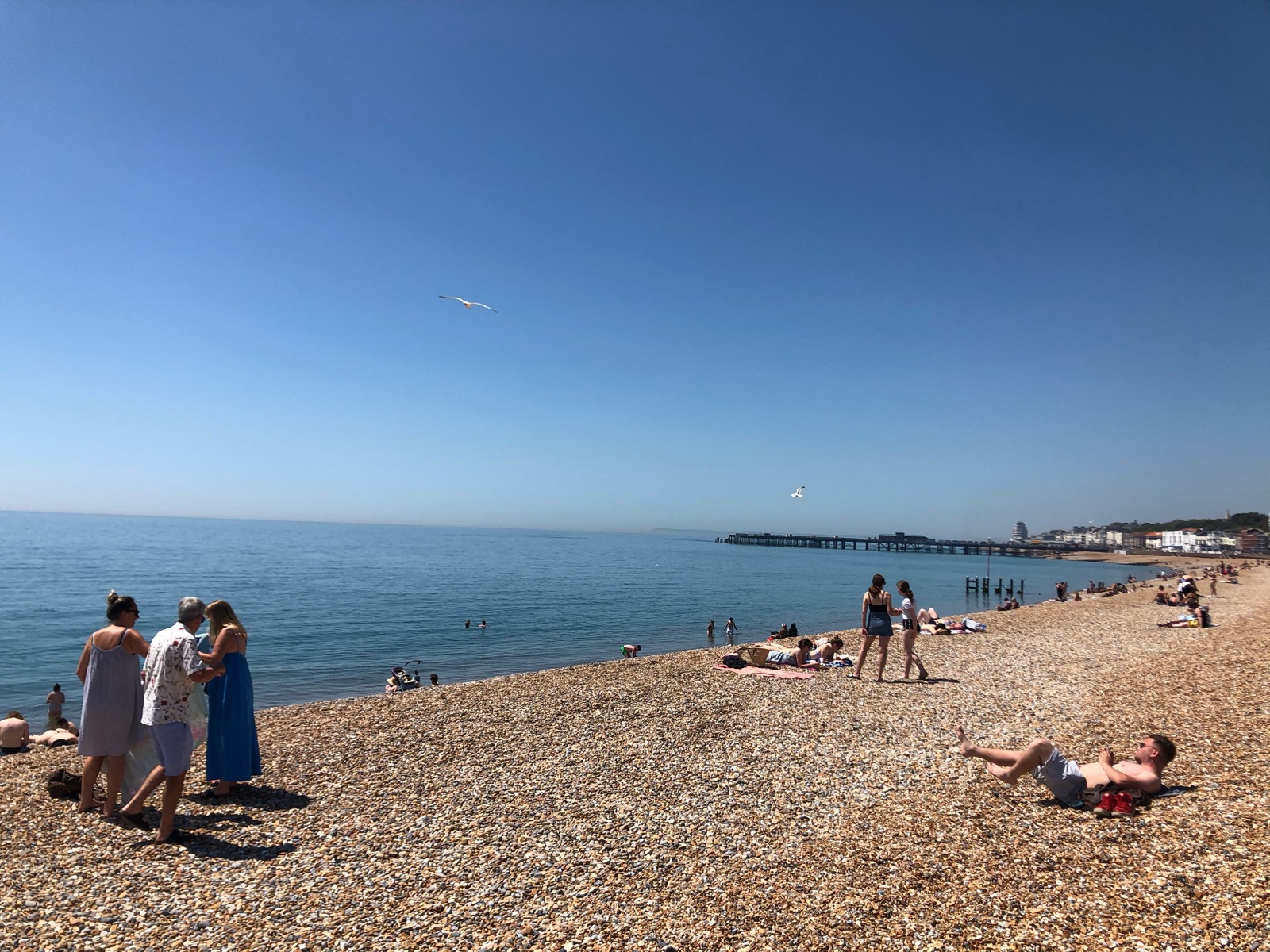 イギリスのビーチは礫浜(れきはま)と呼ばれる、いくつもの小さな小石が敷き詰められた浜辺が多いのも特徴で、ここブライトンも礫浜です。座ると少しゴツゴツとしているので、厚めのビーチタオルを持参することをおすすめします。