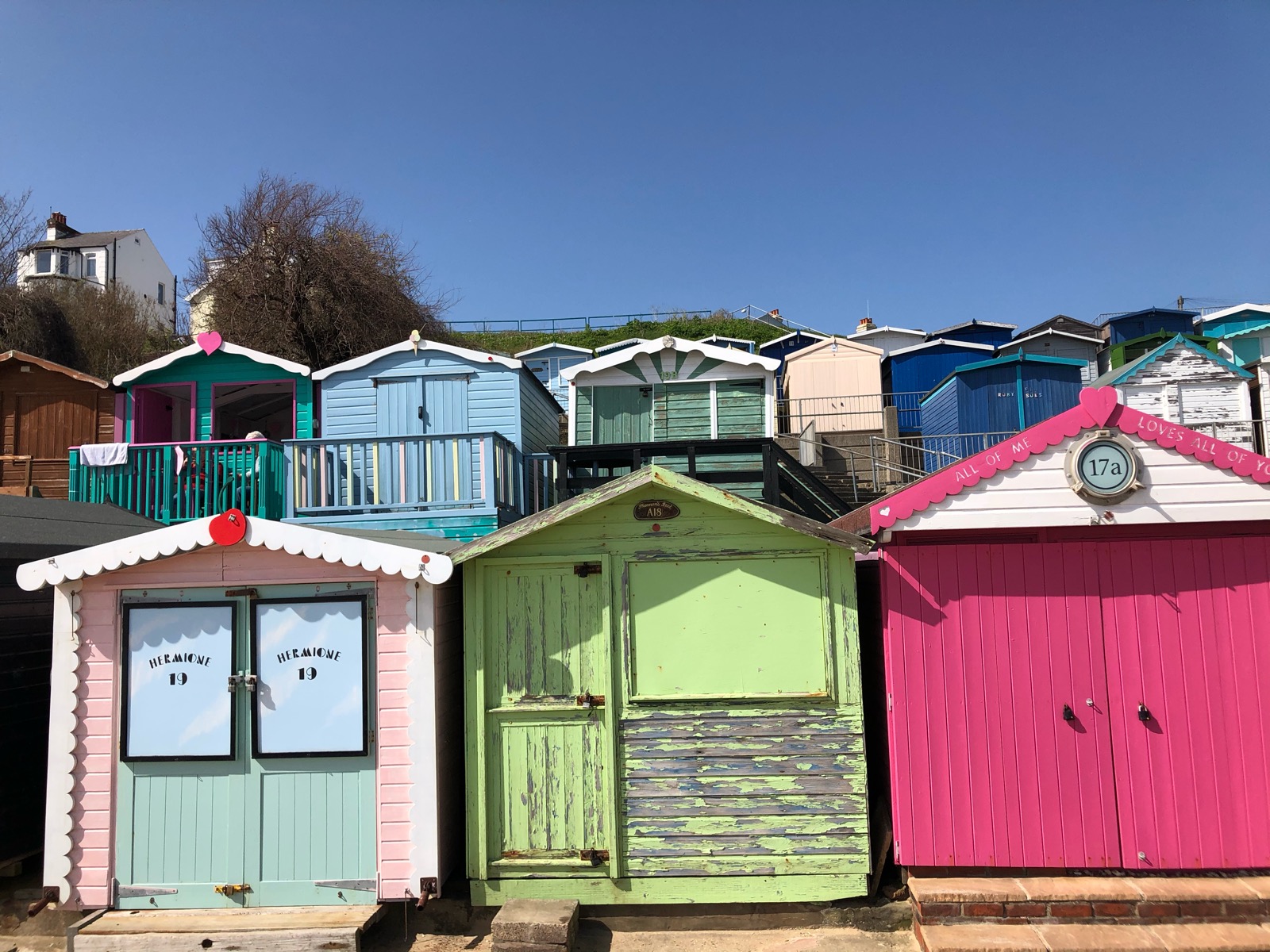 ビーチハットとは木造のこじんまりとした建物で、「個人の海の家」と言ったところでしょうか。夏の間だけ借りていたり、購入して所有したりすることもできます。イギリスのビーチにはビーチハットがあることが多いですが、ここまでの数は見たことがありません。