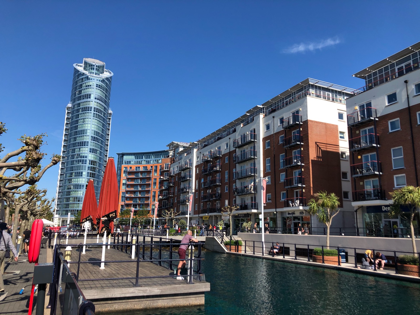 ポーツマス・ハーバー駅の周辺には高層マンションを始め、アウトレットやポーツマスのランドマークであるスピネカータワーが立ち並び、都会の雰囲気を感じさせます。