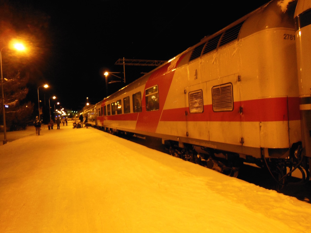 物価の高いフィンランドで一泊分節約できるのはありがたいですし、車内の清潔さは日本の新幹線並みでとても快適。およそ12時間でロヴァニエミに到着です。
