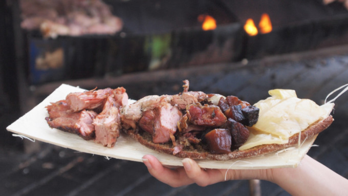 マーケットには雑貨だけでなく、飲食の屋台も数多く立ち並んでいます。昨年のイベントでは、こんがりジューシーな美味しい豚肉料理をいただきました。