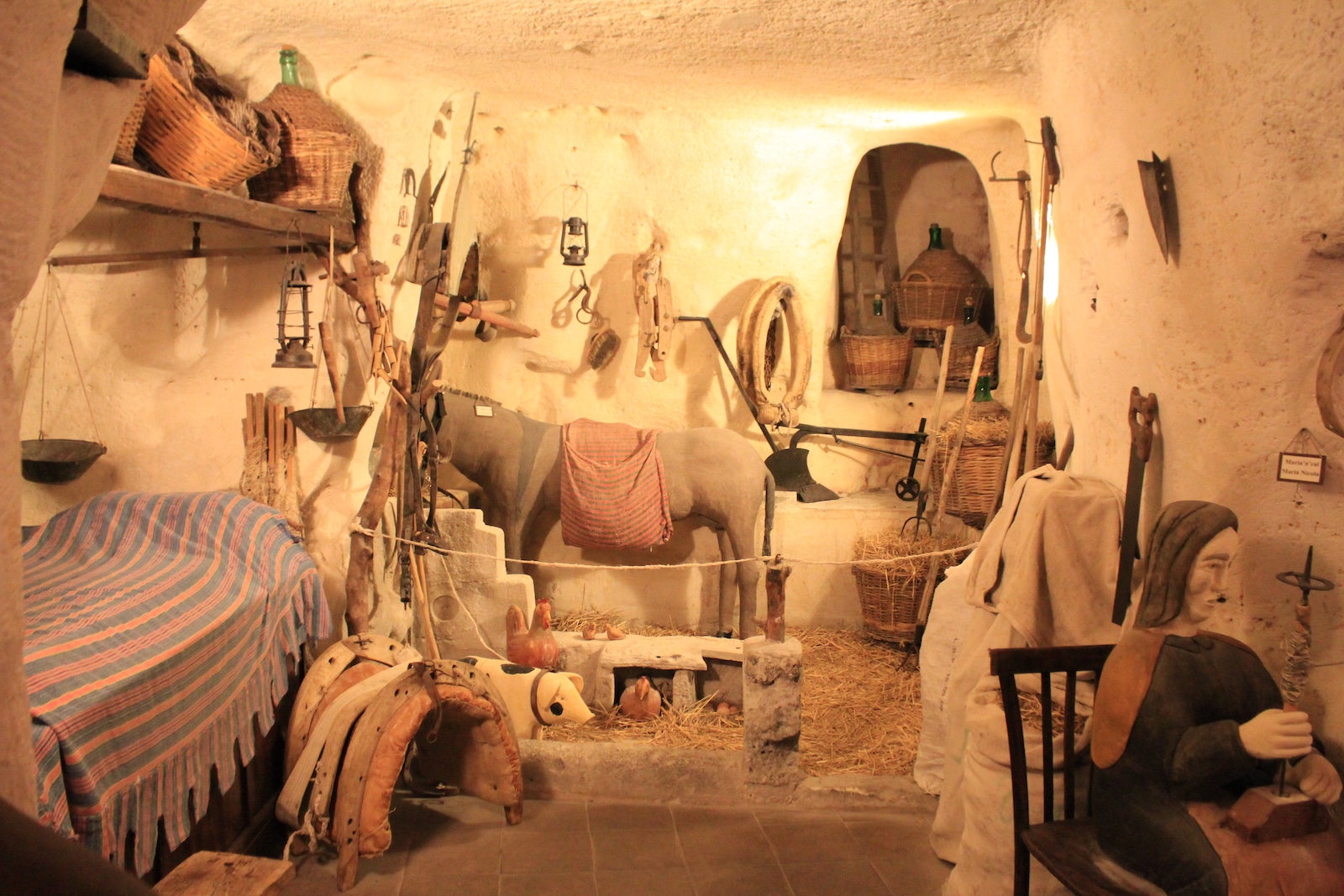そして翌日訪れた『グロッタの家』で、私は大きなショックを受けた。そこは、18世紀当時のマテーラの農民の暮らしを再現した、資料館のような家。家具の配置や家畜の様子なども忠実に再現してあった。