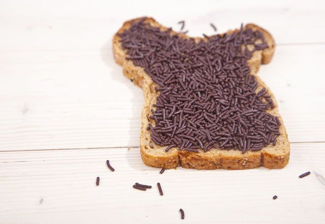 要するにチョコレートなわけだから、これを朝食に再現することは簡単です。チョコレートスプレーをパンにのせて食べてみませんか?すこし溶けるくらいにトーストしたパンに、バターをたっぷり塗ってからふりかけるのが現地流。こうしないと、サラサラこぼれてしまうから要注意!