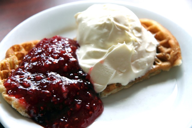 ブラウンチーズを乗せたトーストやワッフルの上にイチゴチャムを乗せるとまた少し違った味わいで、病み付きになること間違いなし!
