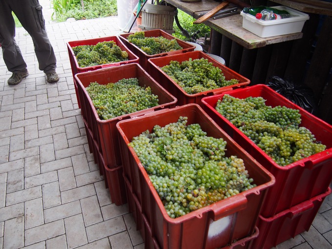 機械の横にはたくさんのぶどうがあります。ぶどうは人力で収穫されたのでしょう。ワインづくりも基本的には人の手によるもの。ワインづくりにかける楽しさ、苦労を少しだけ感じられました。